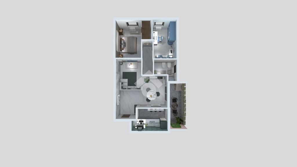 L'ingresso si apre sulla luminosa zona living, composta da un ampio soggiorno e da una cucina abitabile, entrambi con accesso diretto a un grande terrazzo coperto, perfetto per pranzi all'aperto e momenti di relax. La zona notte ospita una camera matrimoniale, una cameretta e un bagno finestrato con box doccia. È presente anche un comodo bagno di servizio.