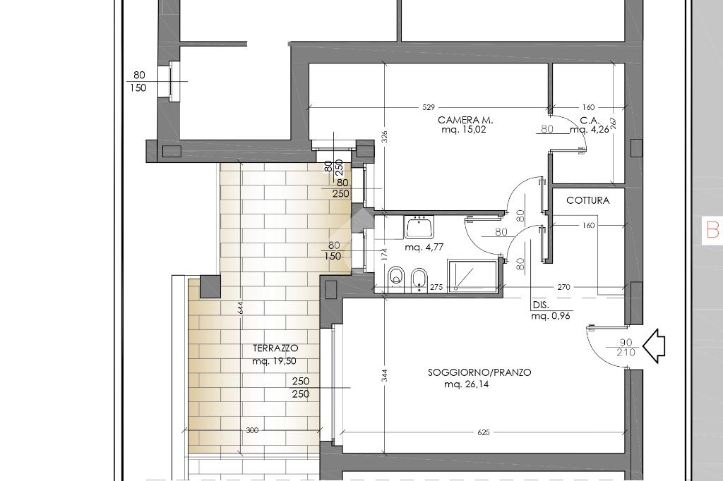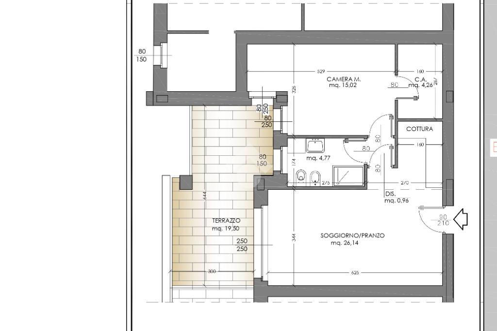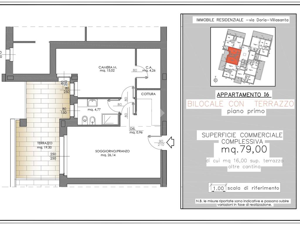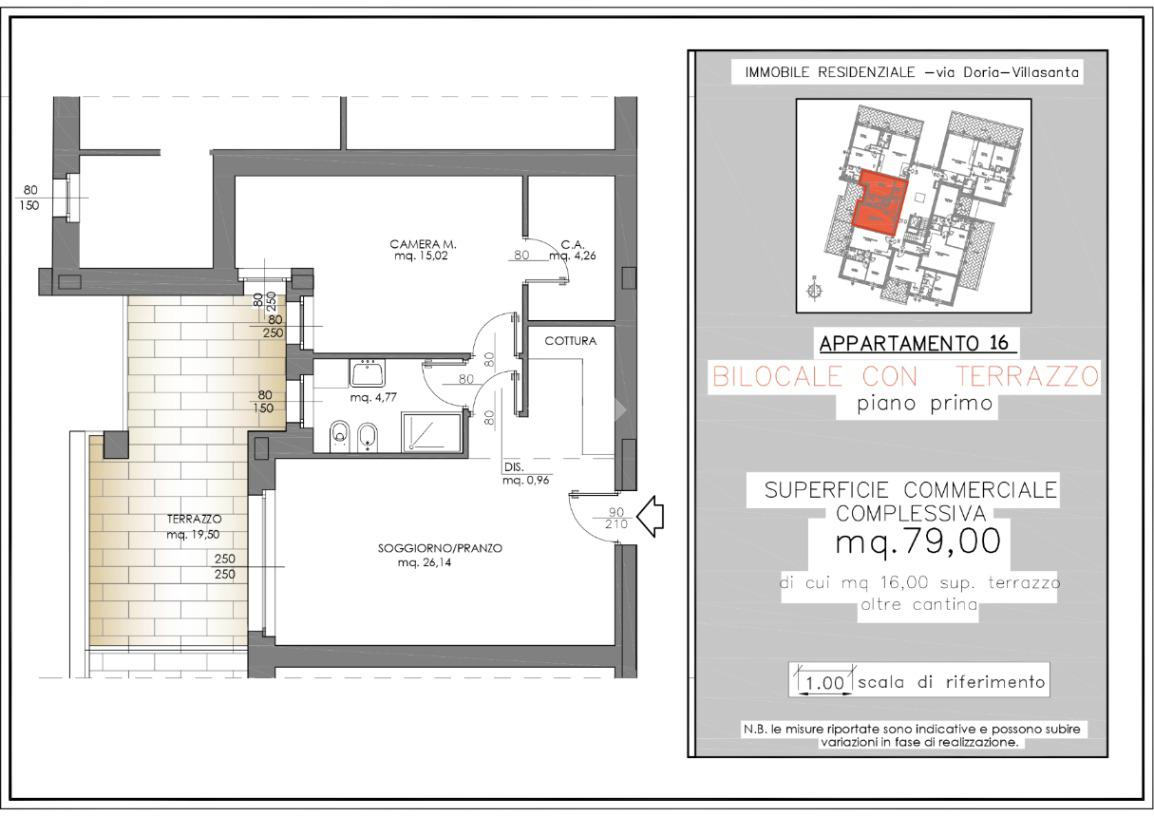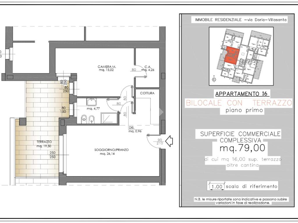 La soluzione, di 76 mq commerciali (63 mq calpestabili), è composta da ingresso sulla zona giorno, disimpegno, bagno finestrato, camera da letto con cabina armadio e un terrazzo di 19 mq, perfetto per godere di momenti all’aria aperta.