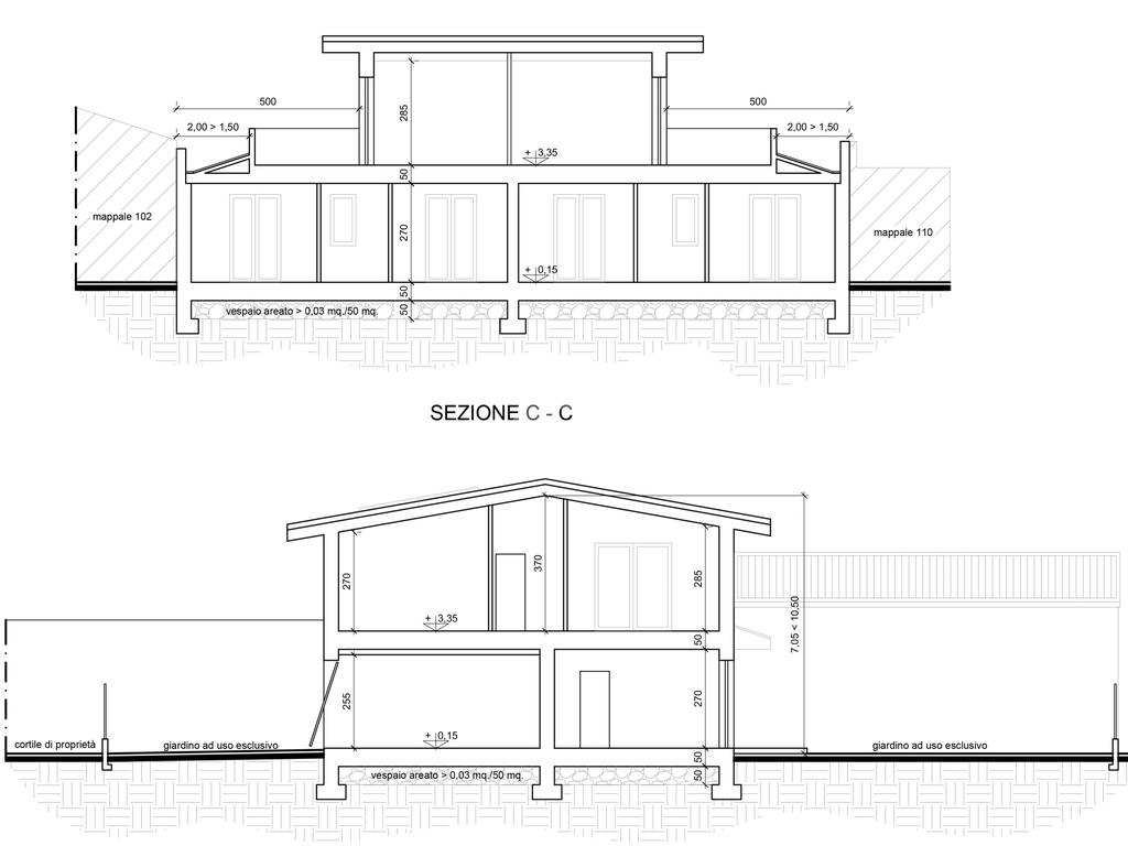 Dal cortile si accede al box auto di pertinenza e, proseguendo tramite scala privata, si raggiunge il primo piano dove si sviluppa interamente l’appartamento.